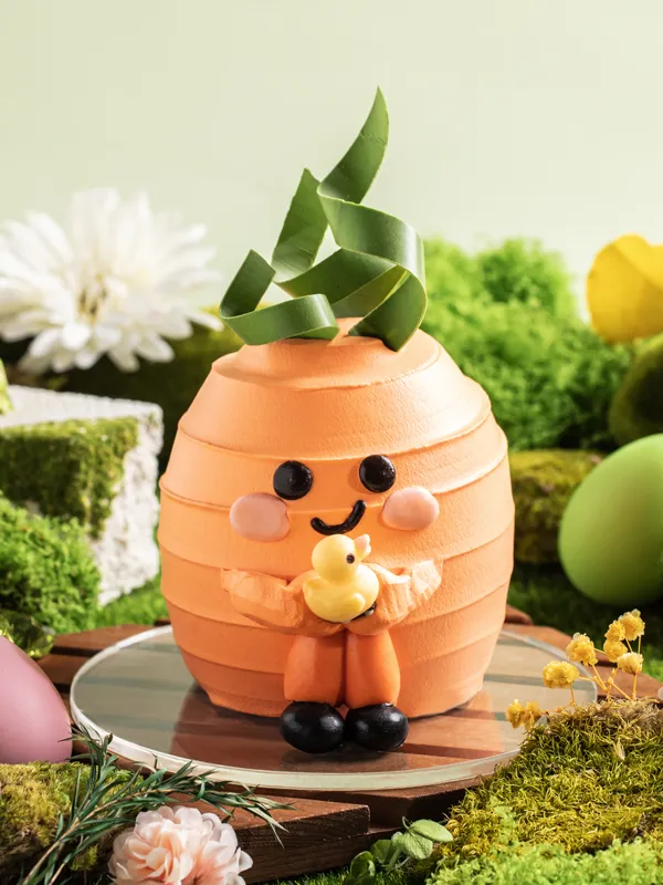 Orange Carrot Cake, Sea Salt Caramel Cream, Oreo Cookies Crumble, Orange Confit, Chocolate Decoration